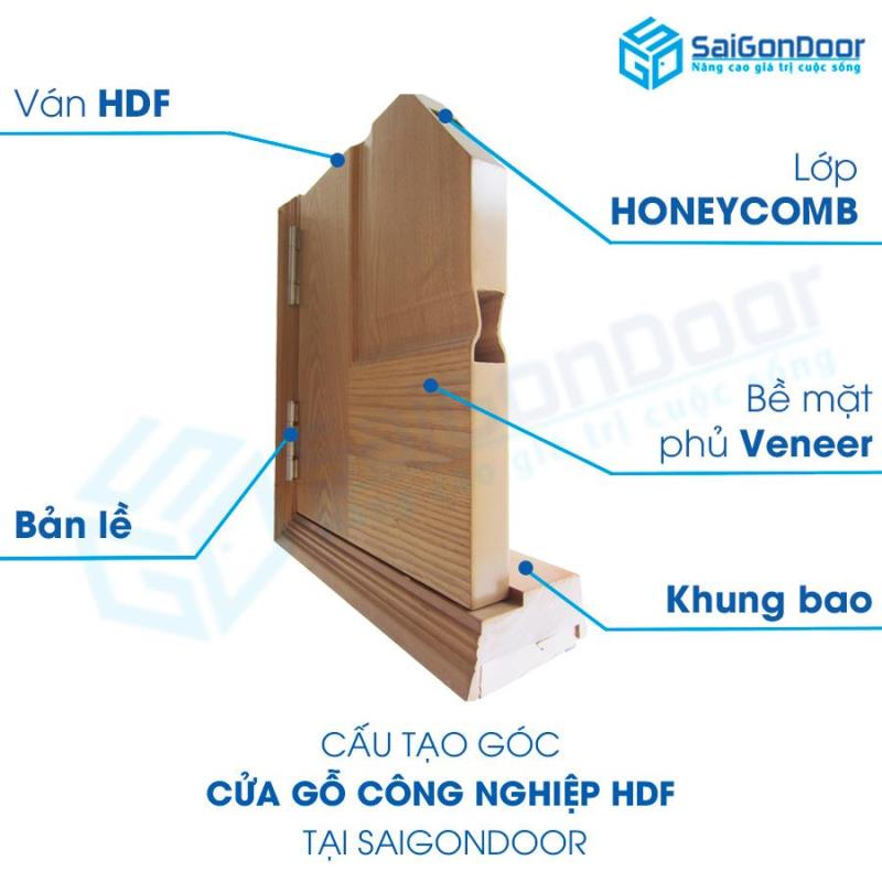 Quy trình sản xuất của Cửa Gỗ HDF phủ Veneer chính là tấm tạo phẳng bề mặt HDF có chất lượng cao và khả năng chống ẩm mốc tốt. Khung xương Gỗ Tự Nhiên cho phép ổn định cấu trúc cửa và chống chịu lực tác động từ bên ngoài.